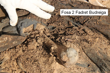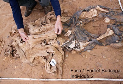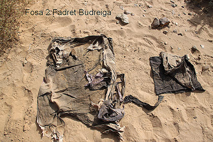 Como ya se ha explicado en este mismo informe, en la fosa de Fadret Budreiga 2 se hallaron los restos de un hombre de edad adulta maduro, que tenía heridas en el cráneo y en extremidades. Las características de las lesiones se corresponden con fracturas causadas por proyectiles de arma de fuego, tales como líneas de fracturas radiales, líneas de fracturas concéntricas y biseles que indican el impacto de proyectiles. En la fosa se encontraron casquillos de bala de calibre 7,62 mm. Utilizada habitualmente por el ejército marroquí.