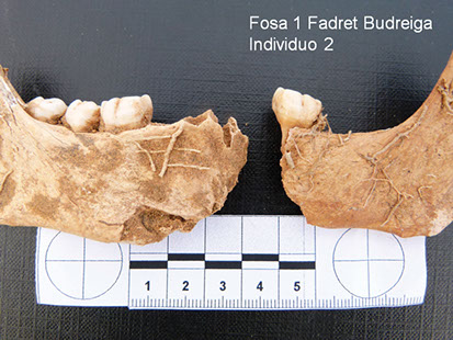 Individuo masculino adulto maduro con calcificaciones de cartílagos costales. No se conservan los huesos de la extremidad inferior izquierda, antebrazo y mano izquierda, así como los huesos de los pies y la mitad izquierda del maxilar superior