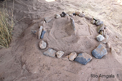 Se trata de un enterramiento situado en un lateral del lecho del río Amgala sobre un fondo arenoso cubierto por piedras de distinto tamaño formando un rectángulo de 2,70 por 2,40 metros, en uno de cuyos lados se observa una laja clavada verticalmente.